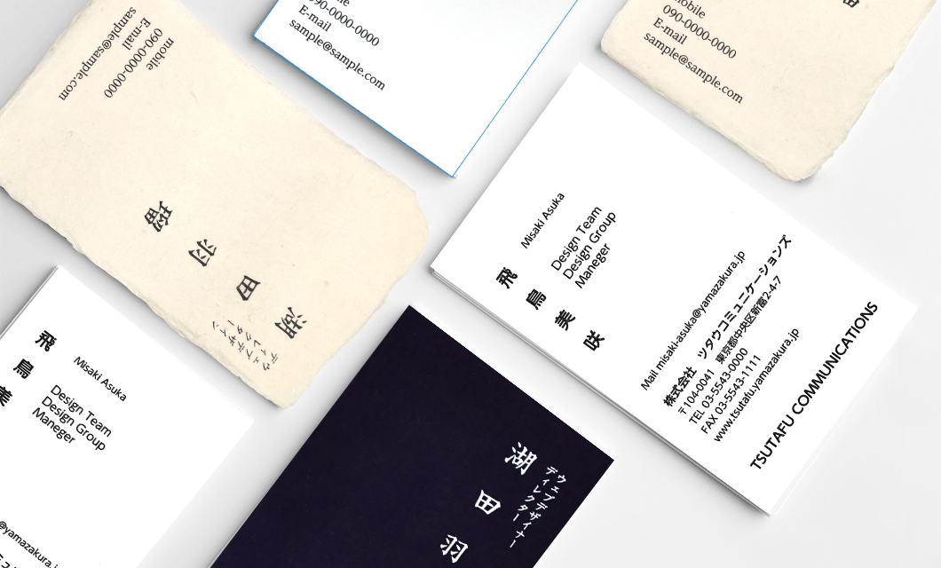 日本が世界に誇れる伝統技術と職人のこだわりが詰まった「手漉き和紙」をはじめ、紙の縁に色をつけた「小口染め」の紙や、昔ながらの風合いが味わい深い「活版印刷」など、こだわりの紙や印刷で名刺がつくれます。