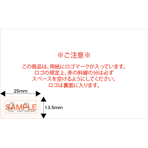 こちらの商品は、森林認証ロゴがあらかじめ印刷されている10面付け用紙(長辺側ドブなし)を使用して印刷した後、断裁いたします。