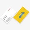 春をイメージした車のシルエットに、春に咲く花と春のモチーフをスプリングカラーで描いた花柄模様をつめ込んだ名刺デザイン。裏面は全面絵柄のデザインです。