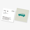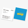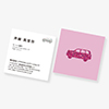 冬をイメージした車のシルエットに、冬に咲く花と冬のモチーフをウィンターカラーで描いた花柄模様をつめ込んだ名刺デザイン。裏面は全面絵柄のデザインです。