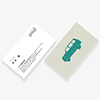 冬をイメージした車のシルエットに、冬に咲く花と冬のモチーフをサマーカラーで描いた花柄模様をつめ込んだ名刺デザイン。裏面は全面絵柄の2020年バージョンのデザインです。