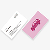 冬をイメージした車のシルエットに、冬に咲く花と冬のモチーフをサマーカラーで描いた花柄模様をつめ込んだ名刺デザイン。裏面は全面絵柄の2021年バージョンのデザインです。