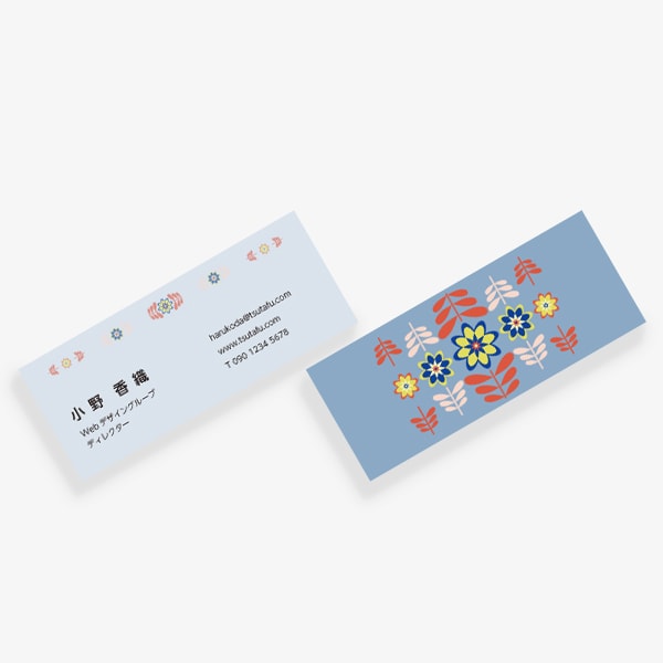 レトロ シンメトリーな花柄 青 裏柄のみ mini 両面