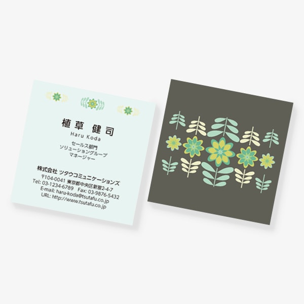 レトロ シンメトリーな花柄 緑 裏柄のみ スクエア 両面